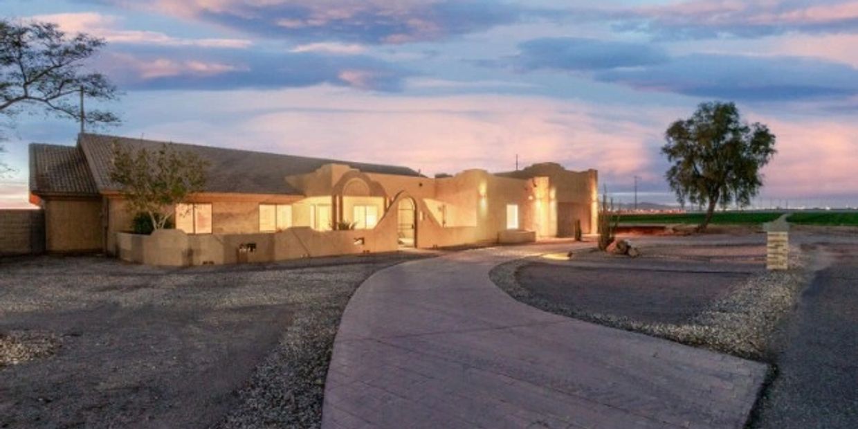 This stunning property offers desert charm and city convenience! A grand semi-circle driveway leads to a newly completed, fully permitted 7-car, drive-thru garage with custom lighting, built-in cabinets, and an EV charging outlet. Inside, the open floor plan is perfect for entertaining, featuring a spacious living area and chef's kitchen. The primary suite boasts a private entrance, snail shower, jetted tub, and walk-in closet, while the secondary bedrooms share a Jack and Jill bath. Relax in the private pool while watching White Tank Mountain sunsets. With over an acre, there's room for toys, a casita, or even a dirt bike track! Homes like this are rare-don't miss out!